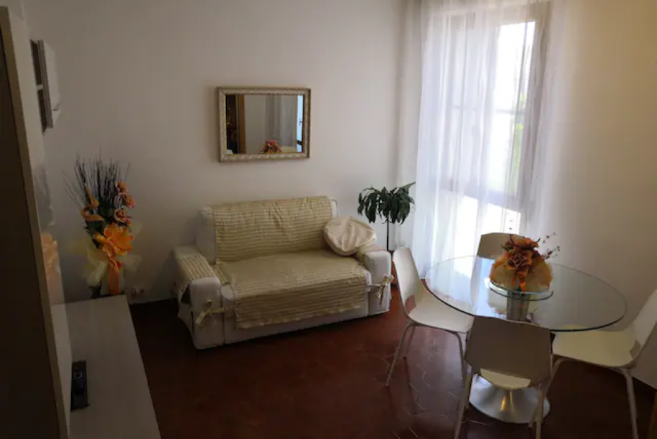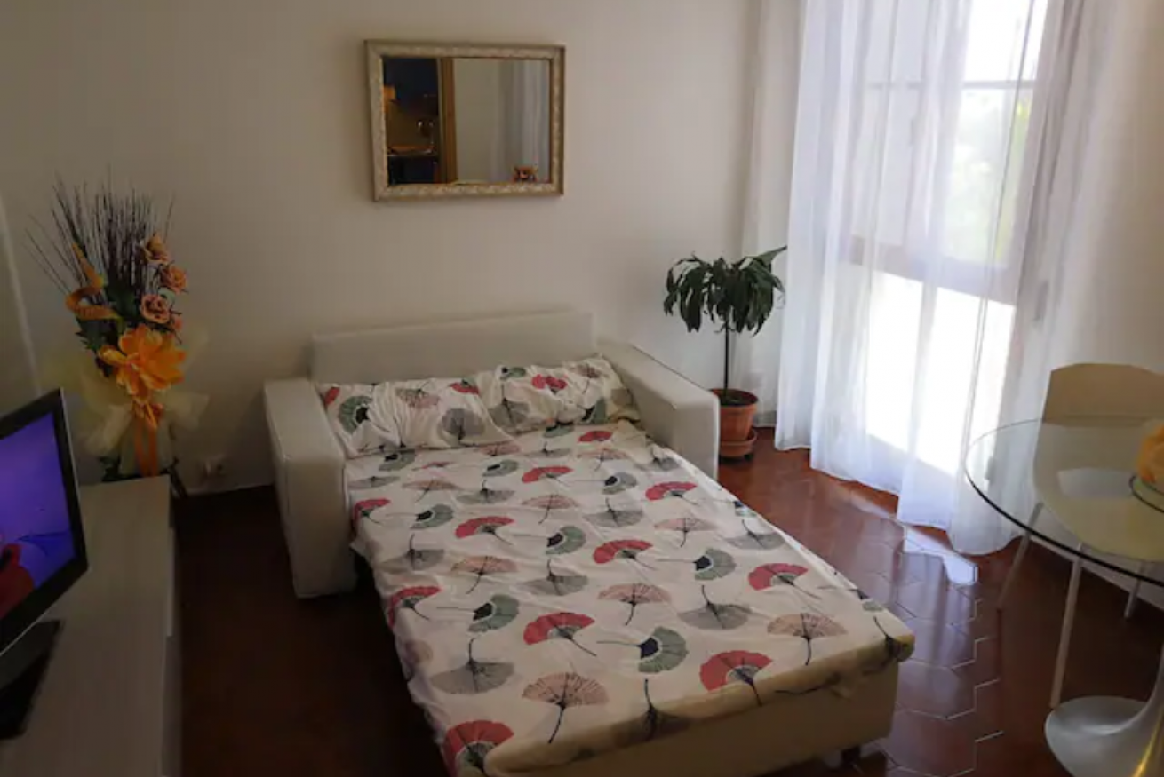 Intero appartamento adatto per soggiorni da 1 a 4 persone. Spaziosa camera matrimoniale e grande soggiorno con divano letto (200cmx120cm). Cucina con 4 fuochi, frigo, congelatore,forno elettrico e forno a microonde. Tutto il necessario per cucinare (posate, piatti, pentole, bilancia, bollitore …). Bagno con finestra,vasca con doccia. Asciugacapelli e Lavatrice. Aria Condizionata. Internet wi-fi gratuito. 2 posti auto riservati. Quinto piano con ascensore. Zanzariere. Per bambini 0-4 anni,disponibile lettino da campeggio con materasso e seggiolone a richiesta. Non fumatori. Il prezzo comprende : consumo di acqua, luce e gas, set biancheria da letto e da bagno per ogni ospite.